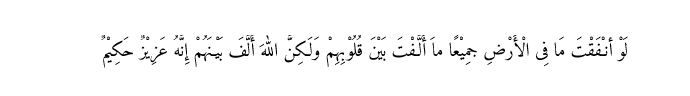 “Walaupun kamu membelanjakan semua (kekayaan) yang berada di bumi, niscaya kamu tidak dapat mempersatukan hati mereka, akan tetapi Allah telah mempersatukan hati mereka. Sesungguhnya Dia Maha Perkasa lagi Maha Bijaksana” (QS. al-Anfal: 63).