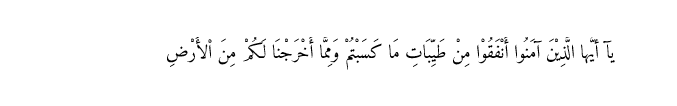 “Hai orang-orang yang beriman, nafkahkanlah (di jalan Allah) sebagian dari hasil usahamu yang baik-baik dan sebagian dari apa yang Kami keluarkan dari bumi untuk kamu” (QS. al-Baqarah: 267).