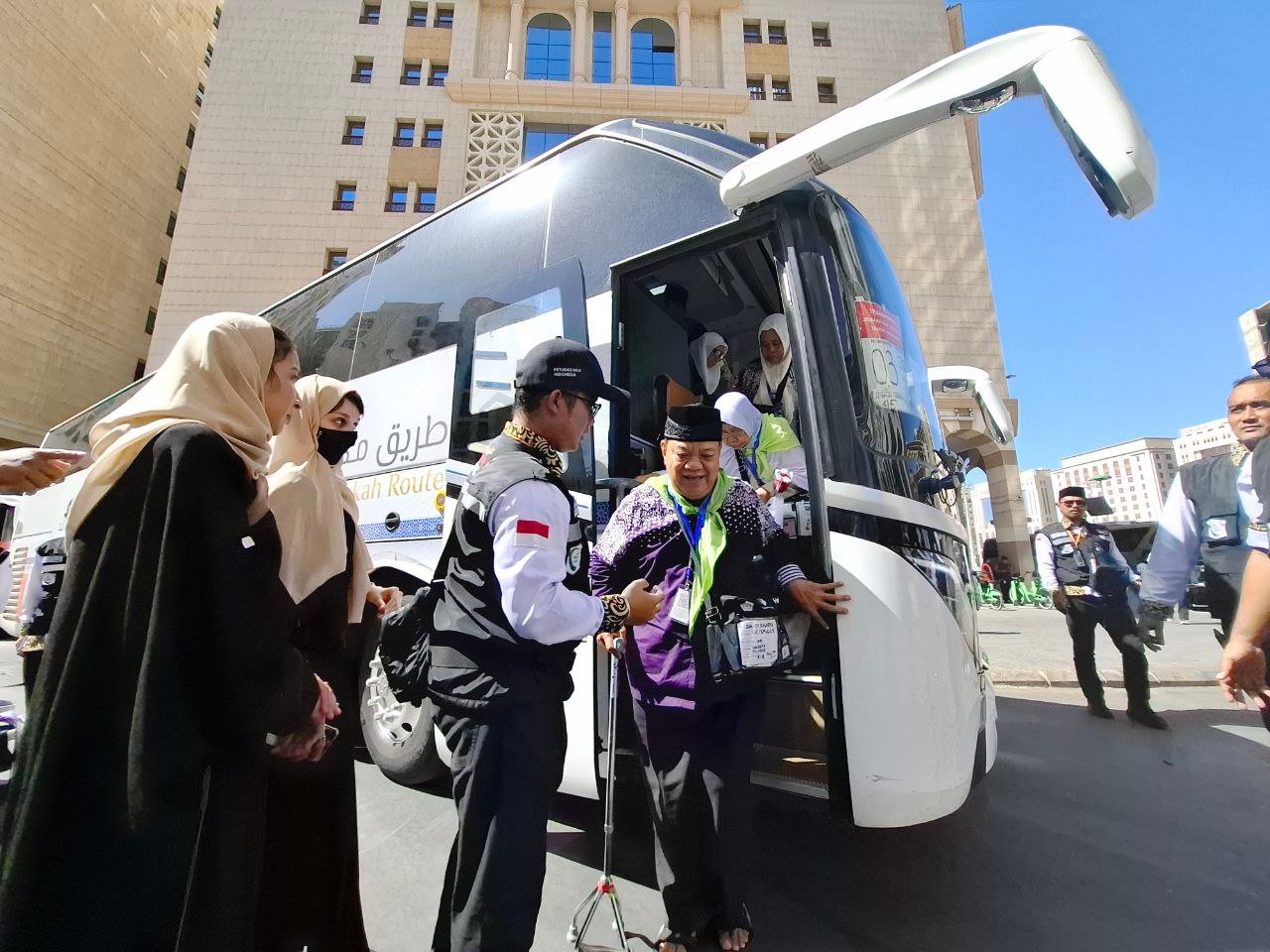 Ketika para jamaah haji tiba di halaman hotel, mereka menerima arahan dari pembimbing ibadah Petugas Penyelenggara Ibadah Haji (PPIH) Arab Saudi. Petugas tersebut mengingatkan kembali ibadah dan doa-doa terbaik yang harus dilakukan saat berada di Madinah. Tim Kesehatan juga memberikan arahan untuk mengantisipasi kondisi cuaca yang panas selama berada di Madinah.