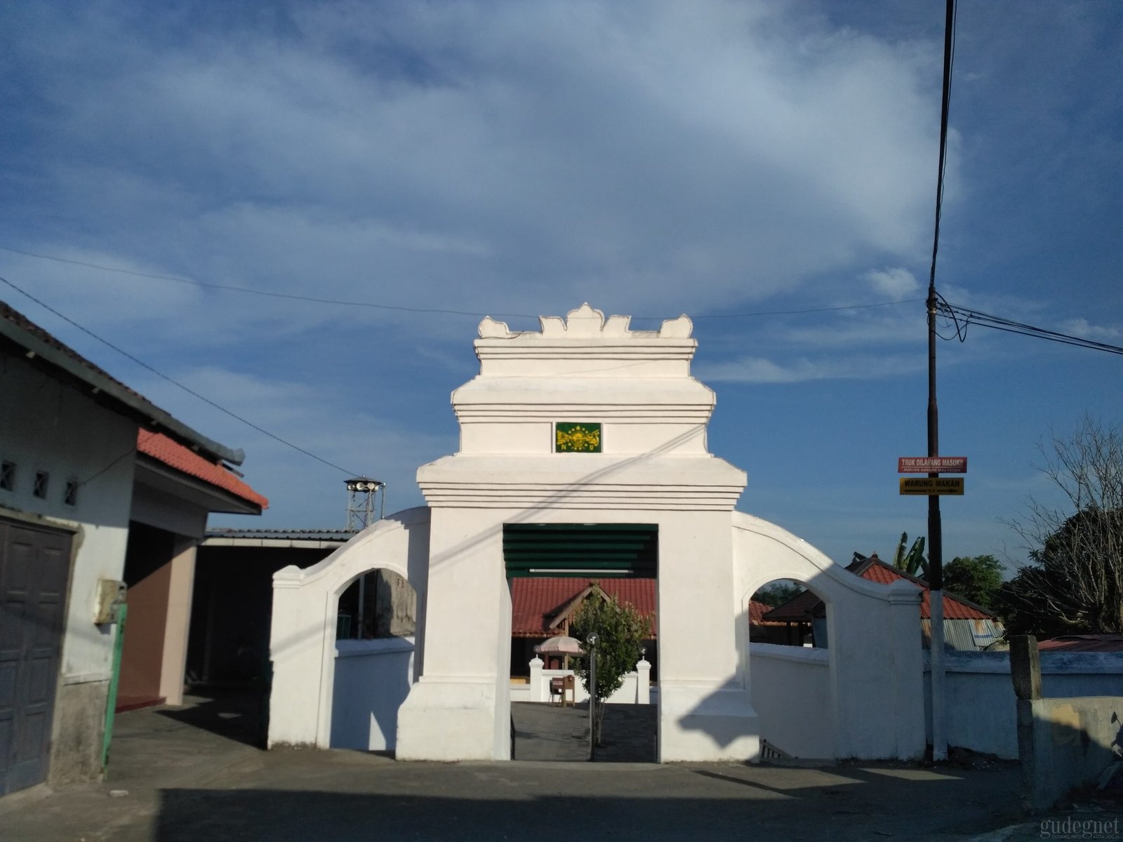 Untuk menuju masjid ini, kita harus melalui pintu gapura bercat putih terlebih dahulu. Gapura ini ada di halaman masjid yang diikuti beberapa anak tangga menurun. Di sisi kiri dan halaman masjid terdapat tembok mengelilingi masjid.