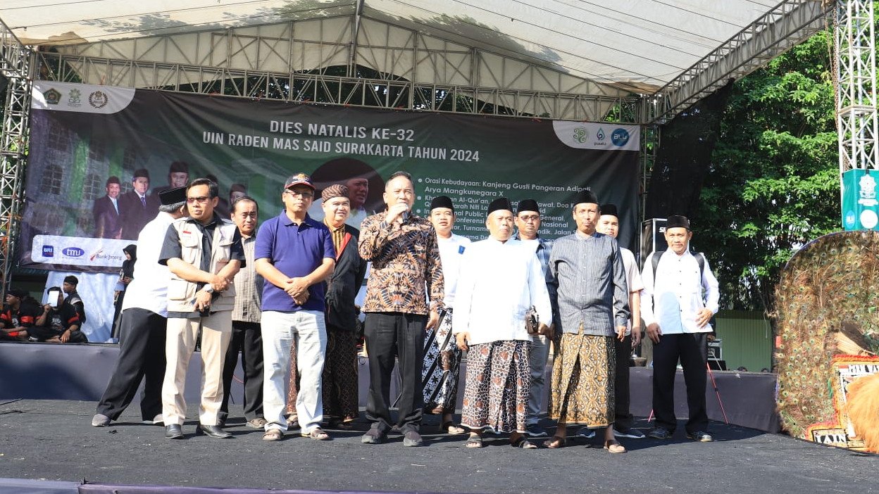 JENDELAISLAM.ID – Universitas Islam Negeri (UIN) Raden Mas Said Surakarta menggelar perayaan Dies Natalis ke-32 dengan berbagai kegiatan, termasuk gelar budaya yang berlangsung di lapangan kampus pada Jumat (13/9/2024).