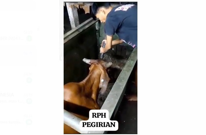 Dalam gambar, lanjutnya, tampak sapi langsung pingsan serta tidak bergerak. Tetapi belum bisa disimpulkan, apakah sekadar pingsan dan hidup kembali normal dalam beberpa waktu (biasanya 2 menitan), cedera permanen, atau mati meski tanpa disembelih.