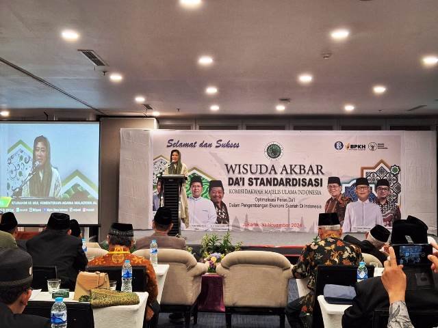 Menteri Komdigi juga turut mewisuda daiyah dengan mengalungkan sorban putih berlogo dan bertuliskan Komisi Dakwah MUI. Hadir dalam acara ini: KH. Anwar Iskandar (Ketua Umum MUI), KH. Cholil Nafis (Ketua MUI Bidang Dakwah dan Ukhuwah), Imam Hartono (Kepala Departemen Ekonomi dan Keuangan Syariah Bank Indonesia), dan Prof. Hasanudin (Ketua BPH DSN MUI).***