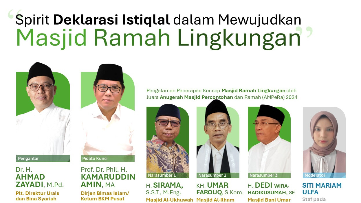 Upaya pengembangan masjid ramah lingkungan ini sudah dicontohkan melalui inovasi tiga masjid percontohan yang menerima penghargaan dalam Anugerah Masjid Percontohan dan Ramah (AMPeRa) 2024.